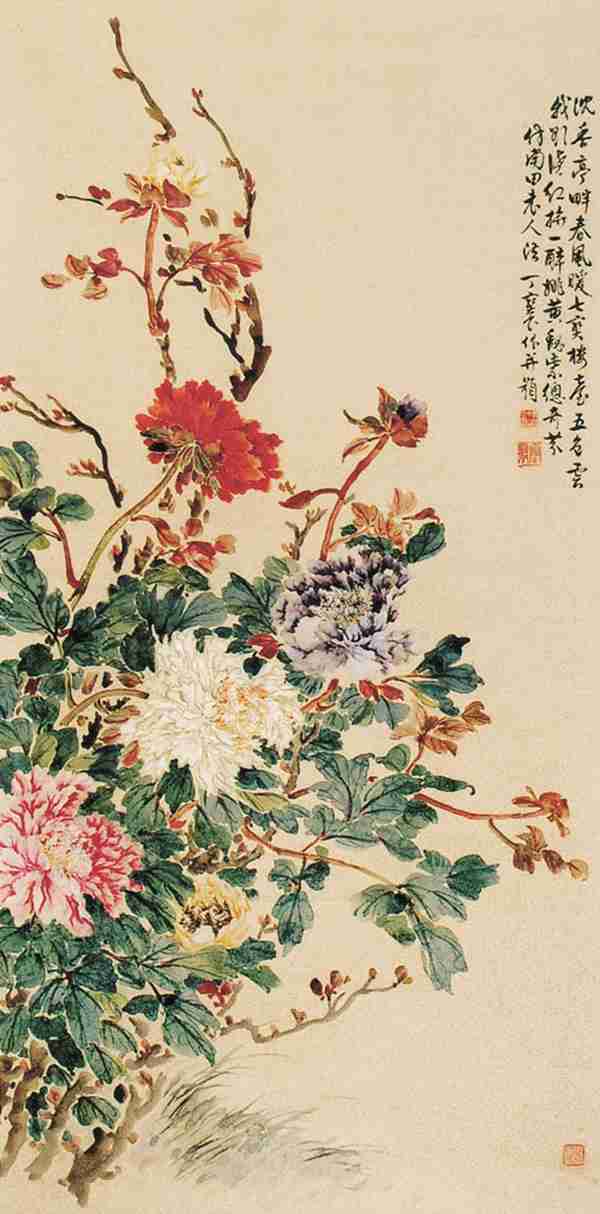 洒金纸本 立轴 钤印:无锡丁宝书 云翁 我亦九龙山人 款识:仿南田老人法,丁宝书作并题。