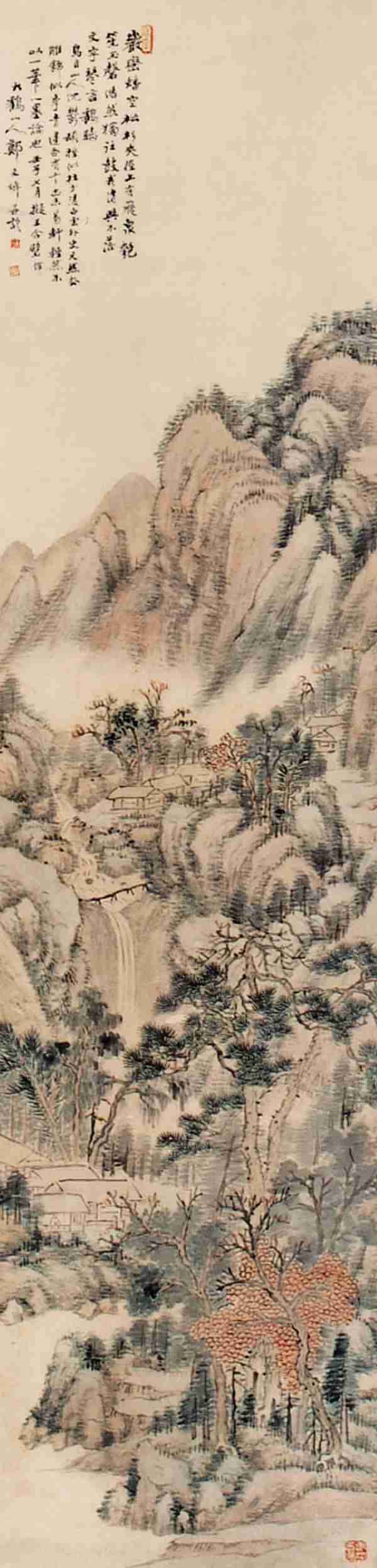 设色纸本 立轴 壬子(1912年)作 钤印:大鹤 老芝 老芝无恙 高密 款识:壬子七月,拟王合璧恽,大鹤山人郑文焯并记。