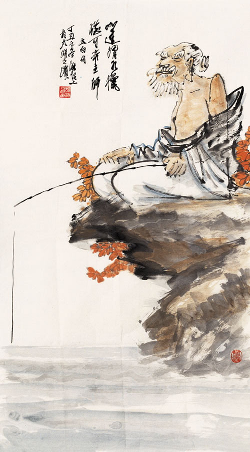 设色纸本 镜片 丁丑(1997年)作 钤印:胡海超印、阿湘 款识:丁丑之冬,海超於太湖之滨。