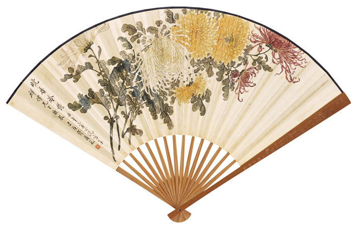 设色纸本 成扇 壬午(1942年)作 钤印:缪莆孙 款识:壬午六月下浣,写奉祥传先生雅教, 谷瑛缪莆孙。