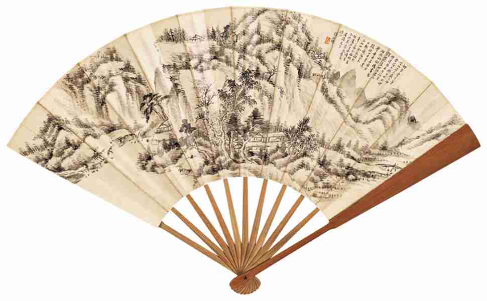 水墨纸本 成扇 钤印:陈二 款识:眉孙先生雅正,陈延鰍