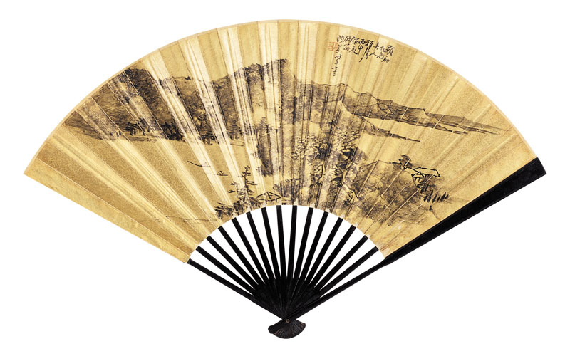 泥金纸本 成扇 丙申(1896年)作 钤印:诒生画印 款识:诒显初仁兄大人雅属。丙申夏, 诒孙陶焘时年七十二。
