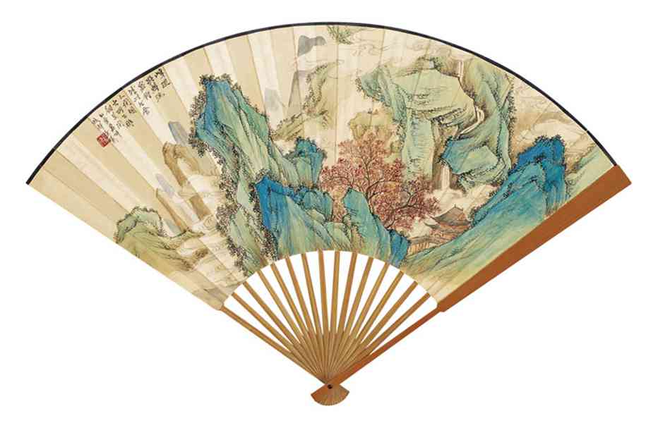 设色纸本 成扇 乙酉(1945年)作 钤印:徐曦 款识:乙酉夏仲,晓徐曦