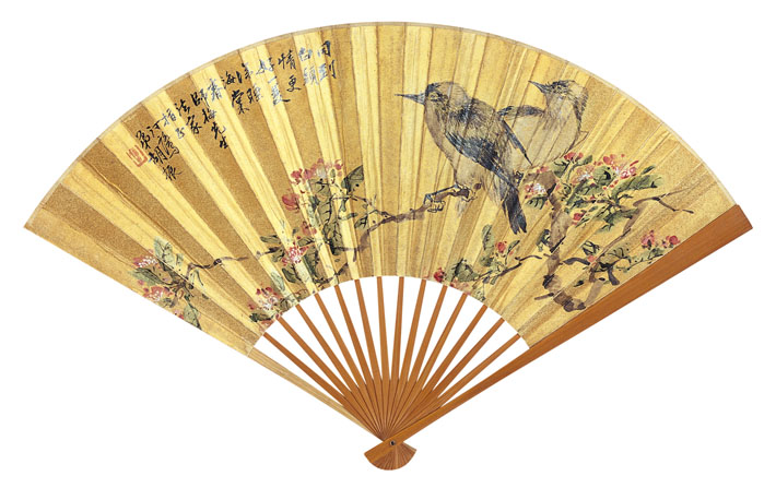 泥金纸本 成扇 钤印:廒公 吴观岱 款识:(正面)师梅先生法家指正,汀鹭弟胡振。 (反面)师梅先生方家指诲,弟观岱。