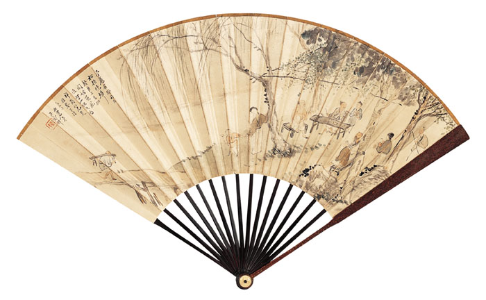 设色纸本 成扇 钤印:谷祥 款识:为便岗仁兄大人雅鉴并请教正,秋农弟吴谷祥。